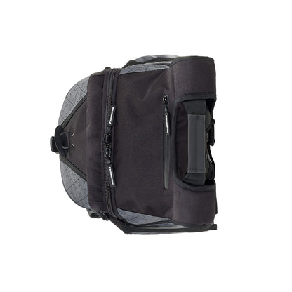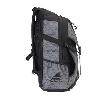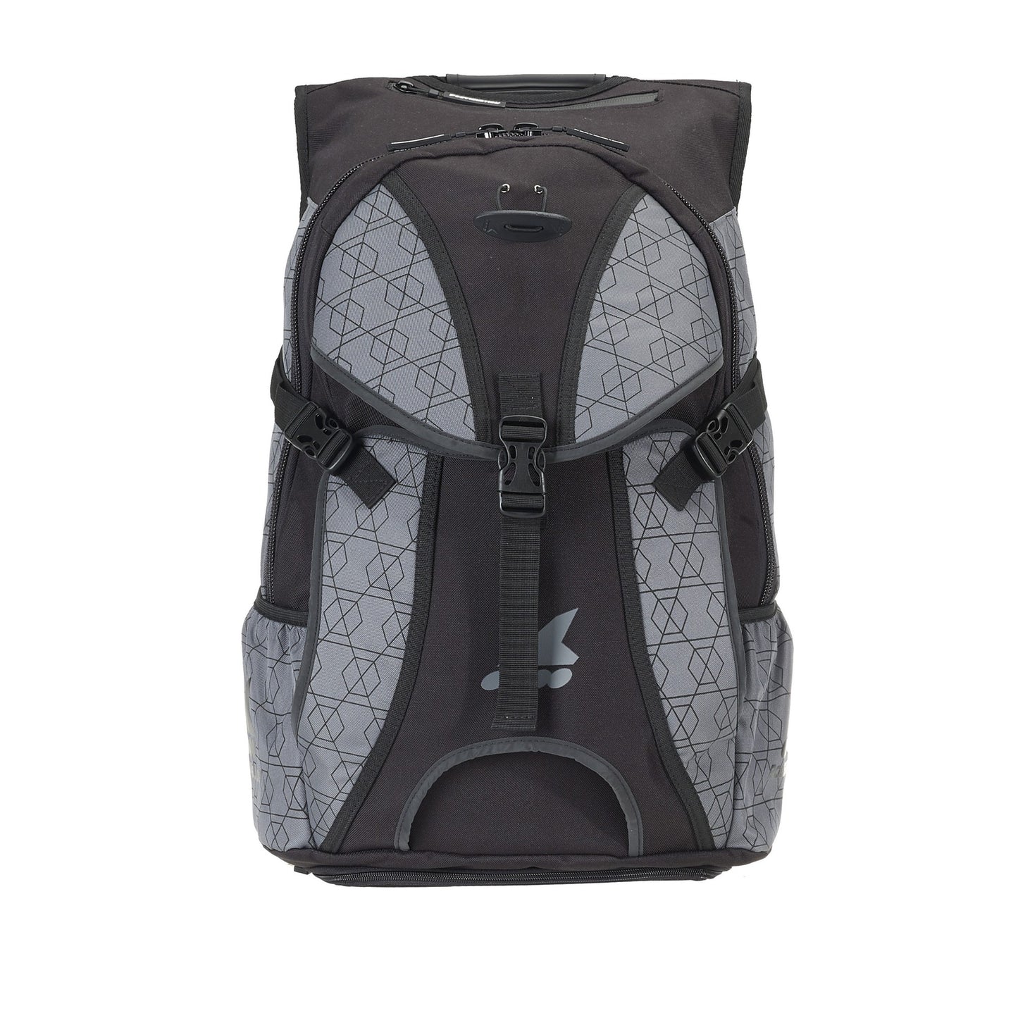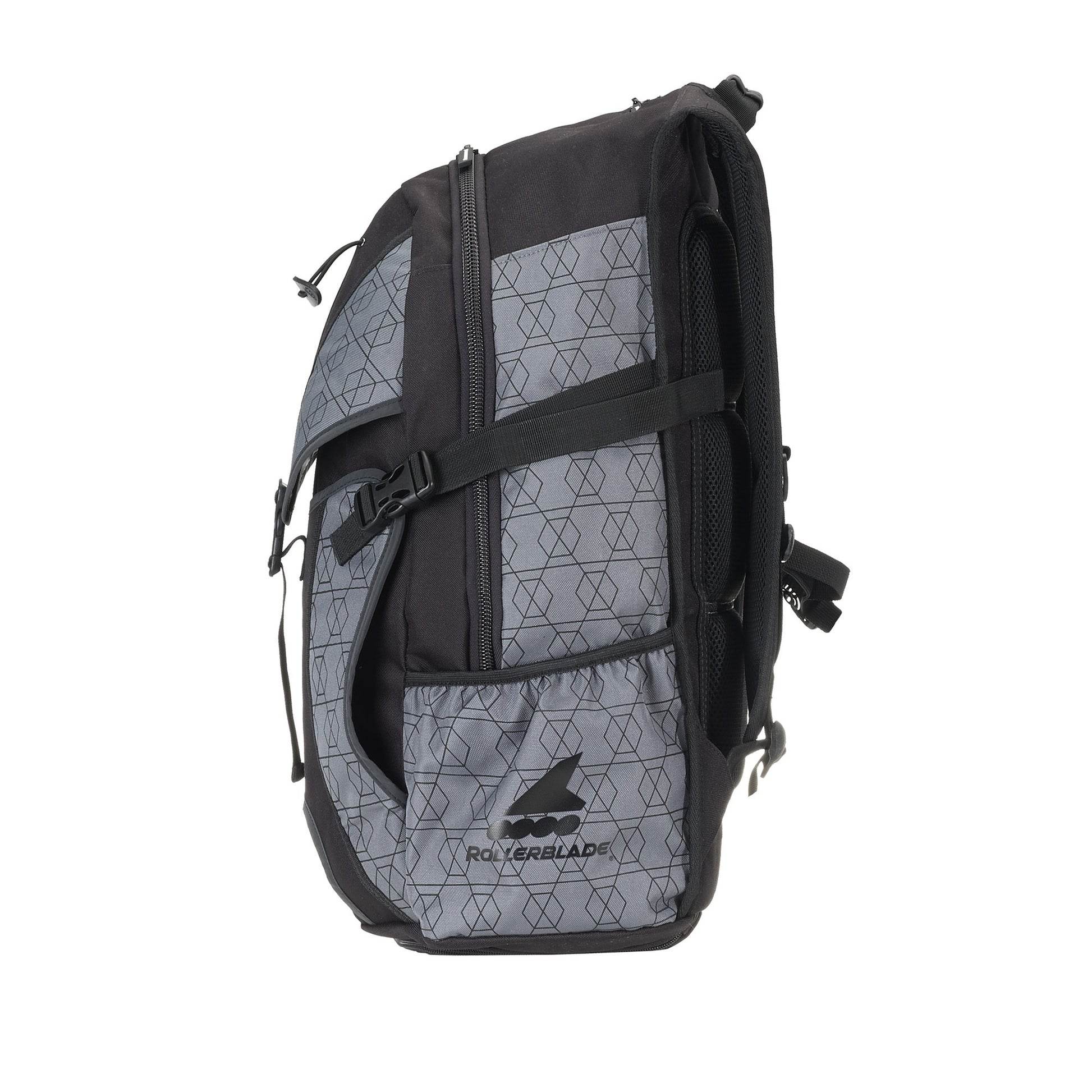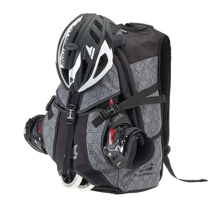 Pro Backpack is a well thought out backpack to accomodate skaters wherever their travels take them. The updated external system carries skates underneath hthe top and botom flaps with the wheels facing each other. The bottom flap covers dirty wheels, secures the skates and has a cut out to fit brake pads or larger wheels. The upper flap covers the top of the skates and adds more support and security. The helmet clip maximizes internal space and the wet compartment on the bottom can keep sweaty, dirty clothes isolated from other clean items in the backpack. Padding on the shoulder straps and back provide ventilation on the back and comfort. Plenty of storage space, water bottle pockets, reflective piping for safety and YKK zippers add to this premium bag with rich aesthetics and functional appeal. Size:36x19x50 (cm)