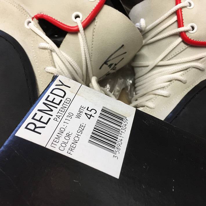 Oldschool Remedy skates. These skates were released in 1998 and were owned by Adapt Brand owner Pieter Wijnant. The skates are completely new and in the original box! A beautiful piece of blading history.