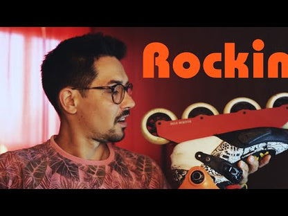 The goal is to create quality diverse, colorful and affordable rockered frames with character for free skating, urban skating and flatground artistic skating that anyone can enjoy. Our slightly rockered frames with bigger wheels are well-balanced and provide both maneuverability and stability while skating. Their low stance and slight forward tilt allow for ergonomics and maximum control. ROCKIN’ Frames have been designed for UFS mounting boots but can also be mounted on most 165mm boots by major brands using our adapters (included in the package).