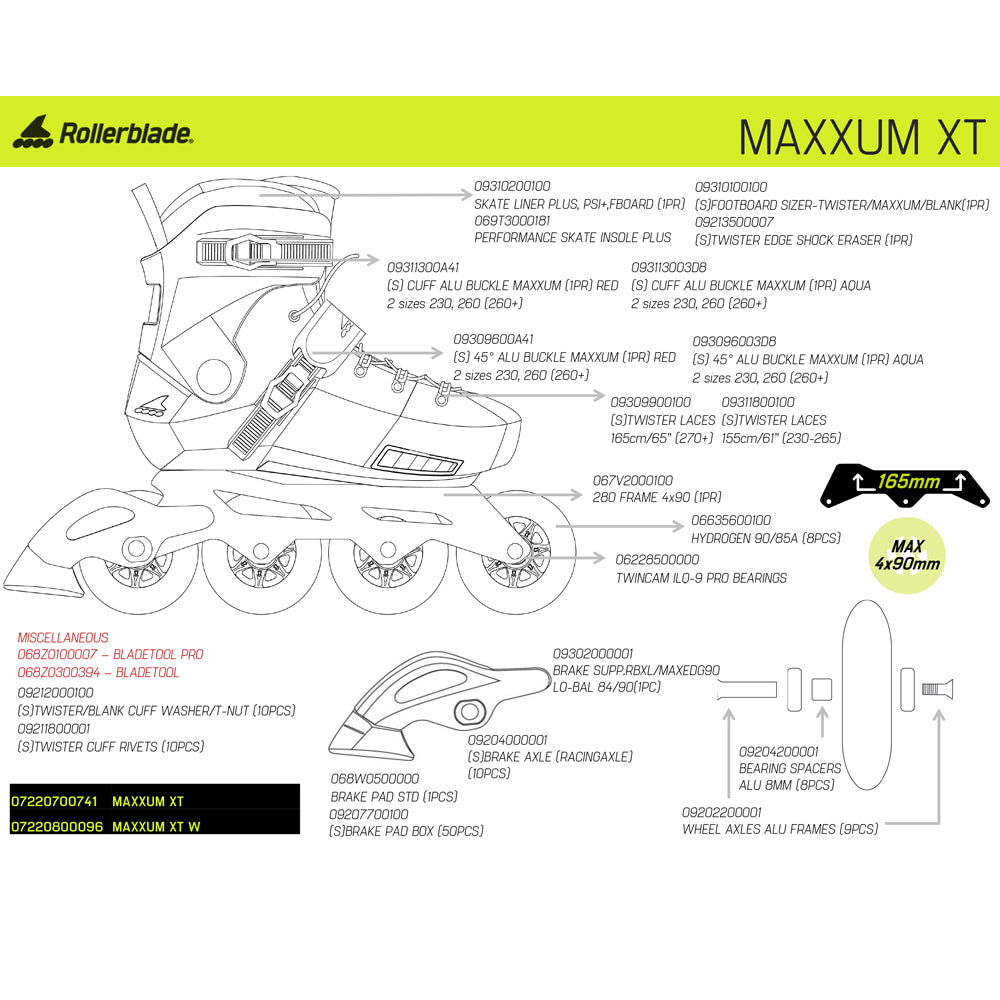 This page features all the Rollerblade Twister & Rollerblade Maxxum models. This is a hardboot skate with a removable liner. It has a 165mm frame mount and is best suited for urban skating.