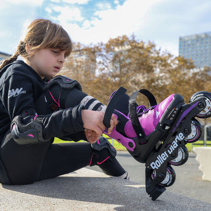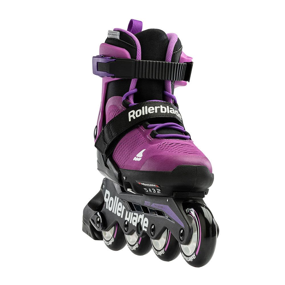 Rollerblade makes the best adjustable inline skates for kids. Microblade skates are adjustable 4 full sizes to grow with children's feet and have an easy to use adjustment system that works with the push of a button. Easy to read markers in the toe area make aligning the skates to the correct size easy and reliable. The Microblade structure provides better support and and helps improve the stability, balance and control.
