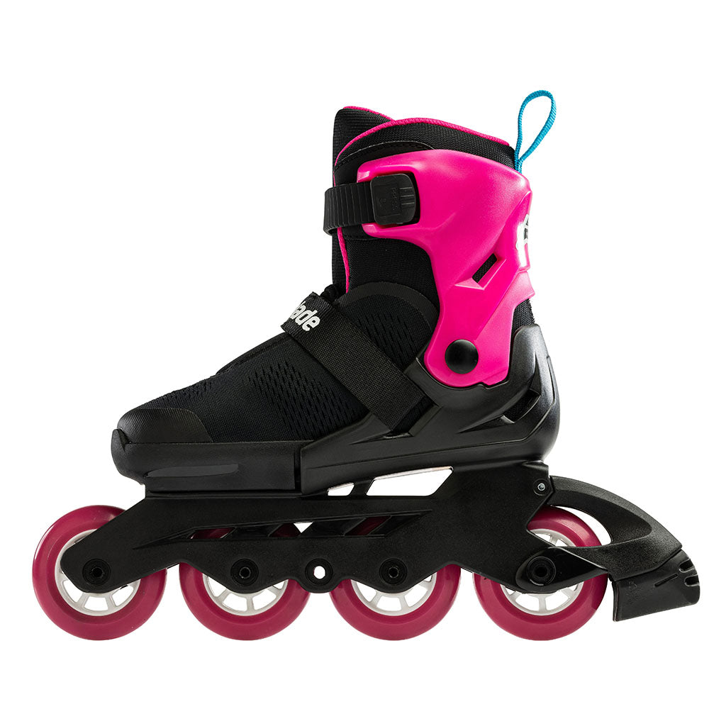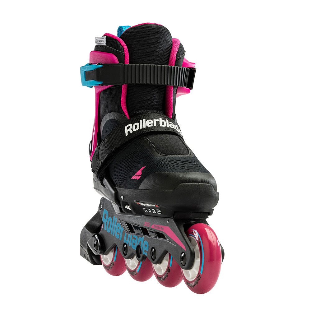 Microblade Free is a high-quality, lace-free adjustable skate for kids. Using Rollerblade expertise, skates are adjustable four full sizes. An easy-to-use extension system works with the push of a button and markers in the toe area align the skates...