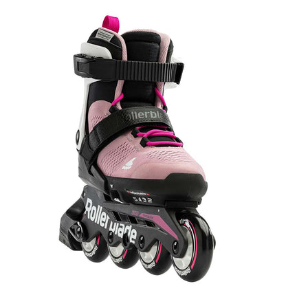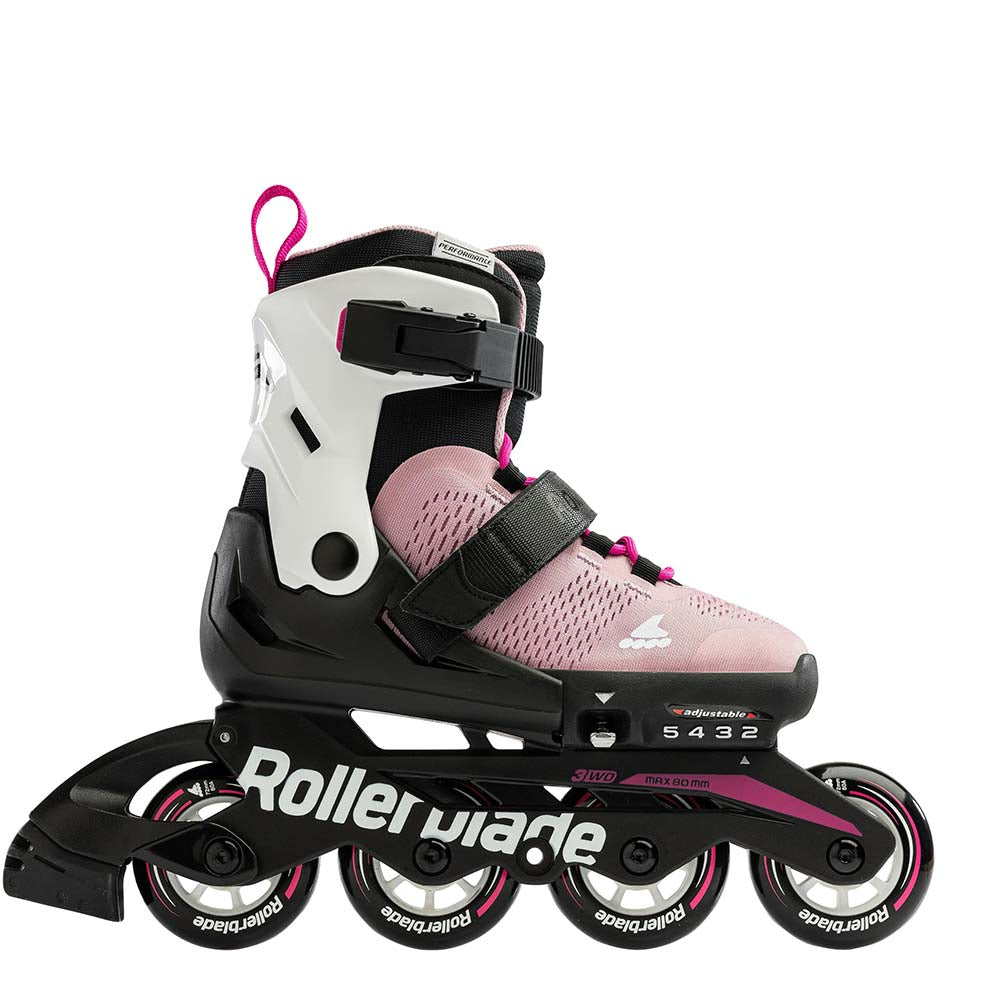 Rollerblade makes the best adjustable inline skates for kids. Microblade skates are adjustable 4 full sizes to grow with children's feet and have an easy to use adjustment system that works with the push of a button. Easy to read markers in the toe area make aligning the skates to the correct size easy and reliable. The Microblade structure provides better support and and helps improve the stability, balance and control.