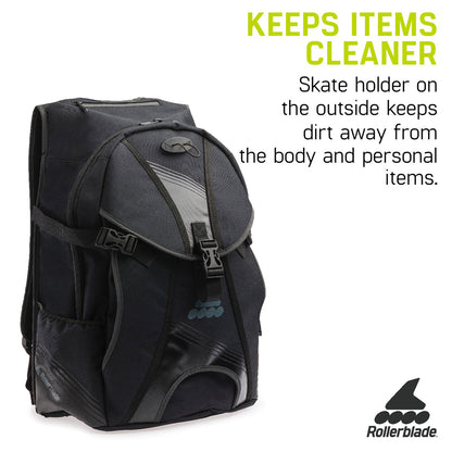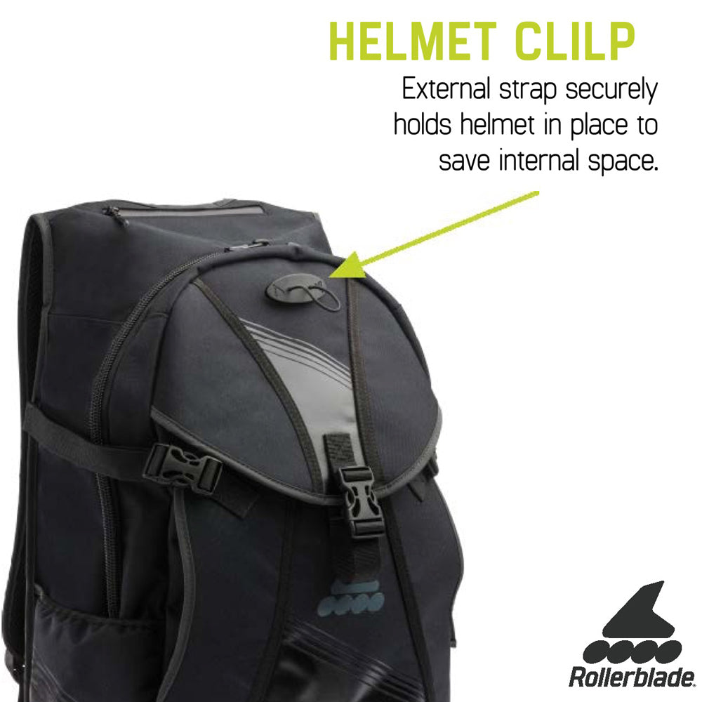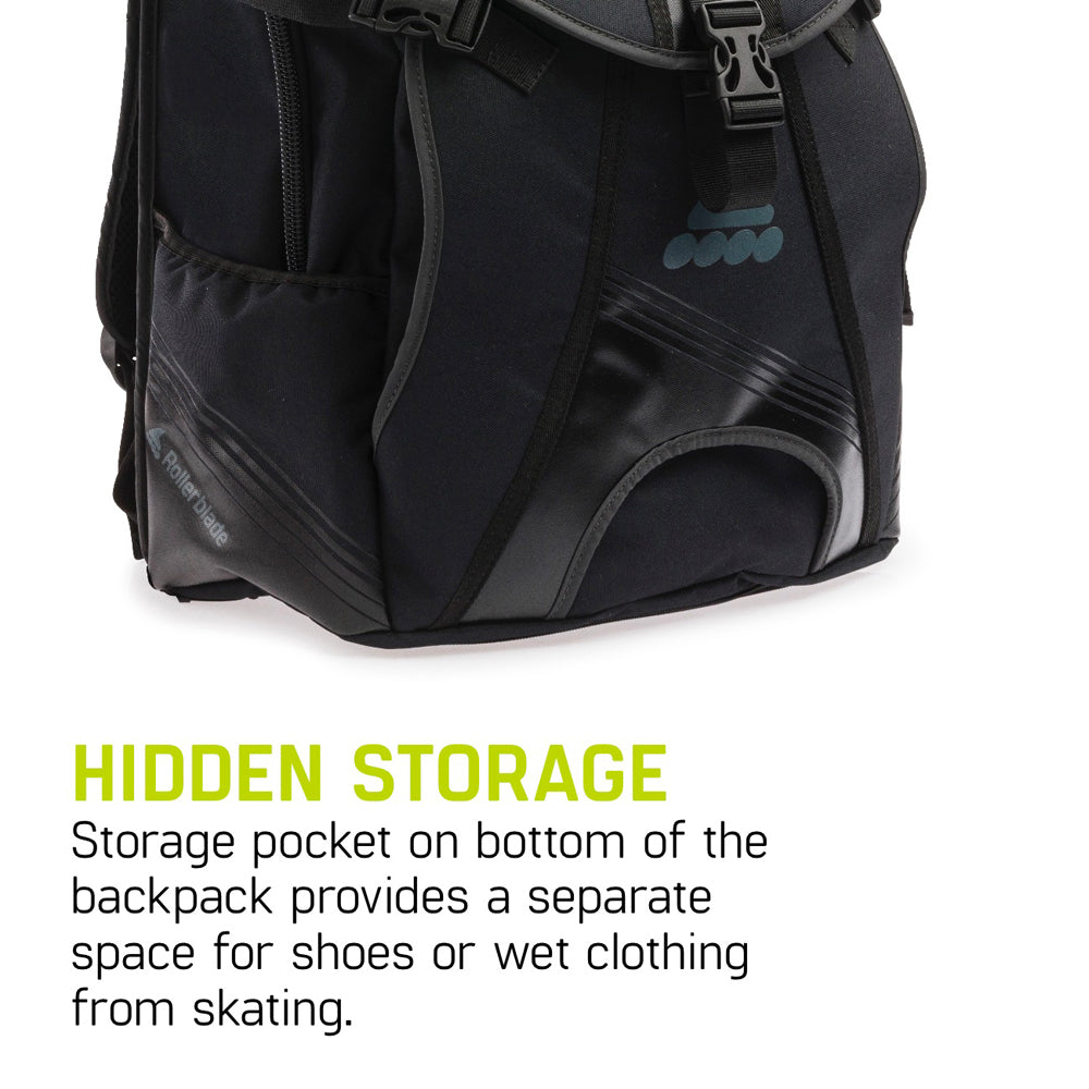 Pro Backpack LT 30 features an updated external system for skate and gear transport. Skates are stored with wheels turned inwards, covered by a bottom flap; room for brakes and larger wheels is included. An upper flap ensures skate stability....
