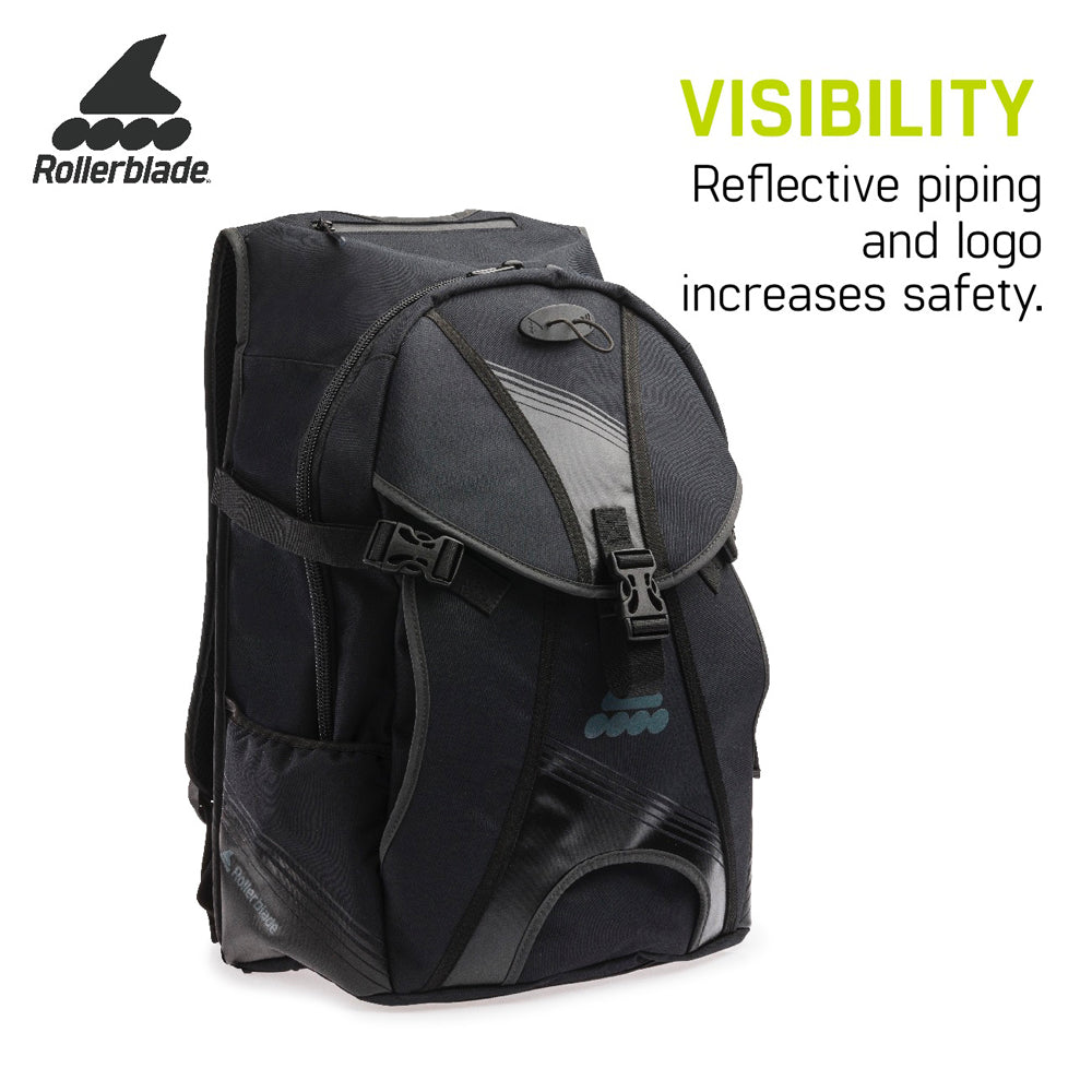 Pro Backpack LT 30 features an updated external system for skate and gear transport. Skates are stored with wheels turned inwards, covered by a bottom flap; room for brakes and larger wheels is included. An upper flap ensures skate stability. The top helmet clip maximizes the internal space, which includes a bottom compartment for used apparel. Back ventilation and shoulder strap padding provide transport comfort. Water bottle pockets, reflective piping and sturdy YKK zippers complete this premium skate bag. 30 liter capacity. Size: 36x19x50 (cm)