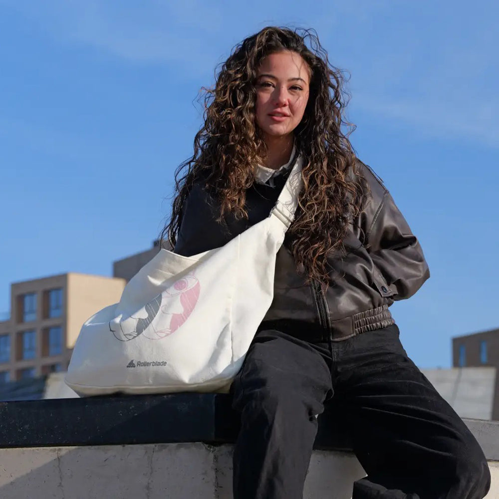 The FR Tote Bag is spacious enough to fit a pair of skates. -