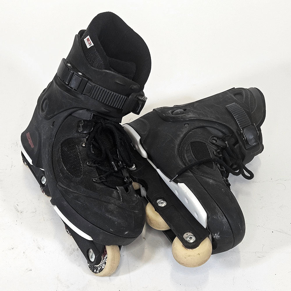 This is the Salomon STi 90 2 aggressive inline skate. These skates are in very good condition. No grinds where done and the wheels are almost unused.