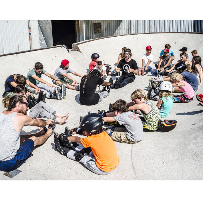 Our goal is to create a strong coherent sport with matching subculture. During the days in Deventer the Campers will be taught about the roots of the sport, healthy lifestyle and all the things you can do on skates like hockey, grinding, airing, gapping, stairbashing, slalom and powerblading