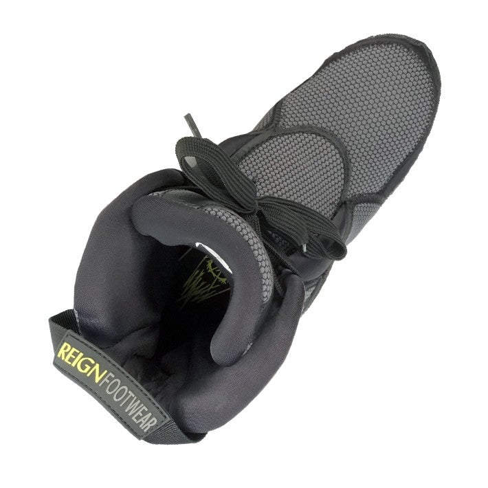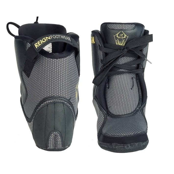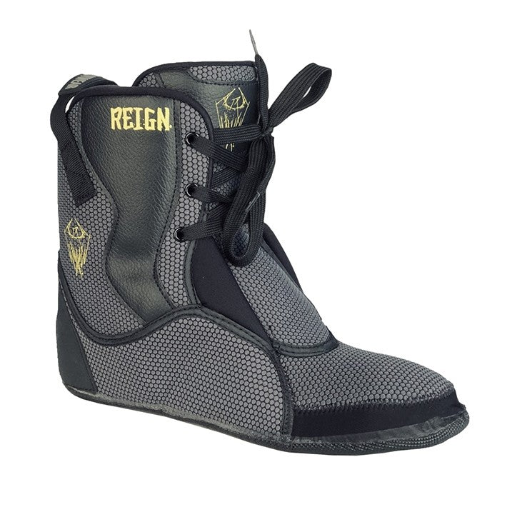 Alex Burston & Co keep ideas for product improvements coming: The 3rd generation liner features a U-shaped cuff, a reinforce carry loop and a 5 mm thinner but higher density padding. A slim bodied liner combined with Reign’s lacing system allows you to strap up your skate tight enough which makes you feel more in tune with the boot and more responsive. We also added a neoprene pad in the toe and anti-slip material in the heel area.
