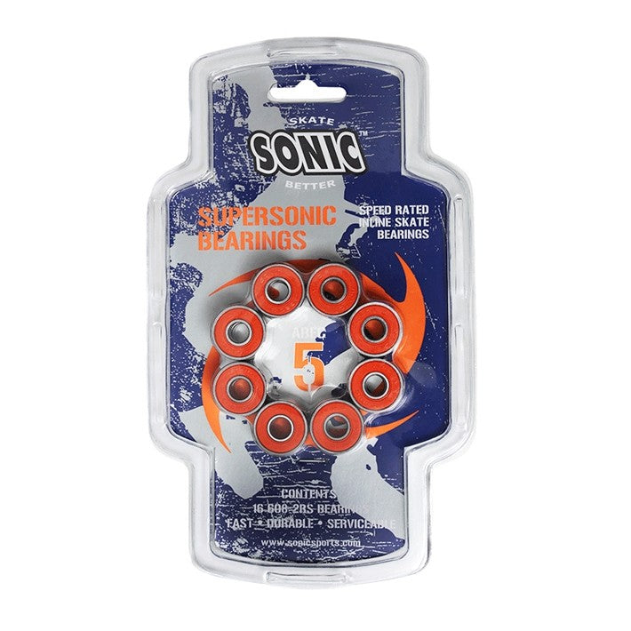 Sonic ABEC5 Skate Bearings are a solid replacement set of bearings, perfect for those who want an inexpensive bearing that doesn’t sacrifice quality. Unlike most brands, Sonic uses labyrinth seals to prevent dirt and debris from getting inside, which greatly extends the life of the bearing. Sonic also uses premium SUJ2 steel from Japan that maintains its high-level of performance at all levels of play.