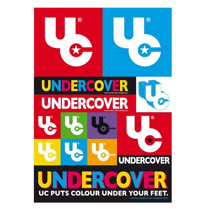 Undercover doesn't just bring colour under your feet, it also brings colour to your helmet, skates, room and anywhere you manage to put up a sticker. With this A4 (21 x 30 cm) stickerpack you get 13 different stickers in all colours of the rainbow, ready to decorate your stuff!