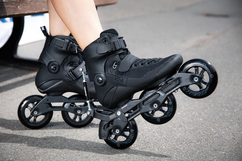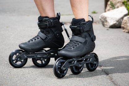 Powerslide SWELL Triple Black Synco 110 performance fitness inline skates for your intense skating workout. MYFIT comfort & customized control on TRINITY X mount and the all new Syncro brake.