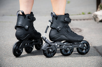 This page features all the Powerslide Swell models. This is a plastic softboot without removable liner. It has a trinity frame mount and is best suited for urban skating
