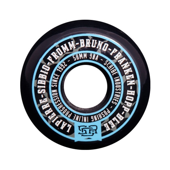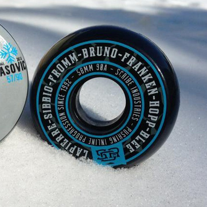 Hardness: 90AThis black Scribe Urethane 2013 Team wheel features the names of all the team riders printed on the wheel. It's 58mm size and 90A hardness make it a perfect wheel for the more demanding skaters who want a harder and bigger wheel.