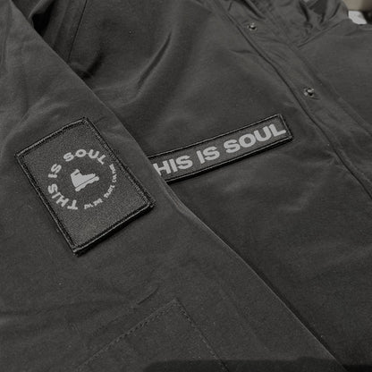The This Is Soul Army Line Jacket is a warm jacket that is designed to protect against the elements of winter, designed to prevent rain, cold and wind.