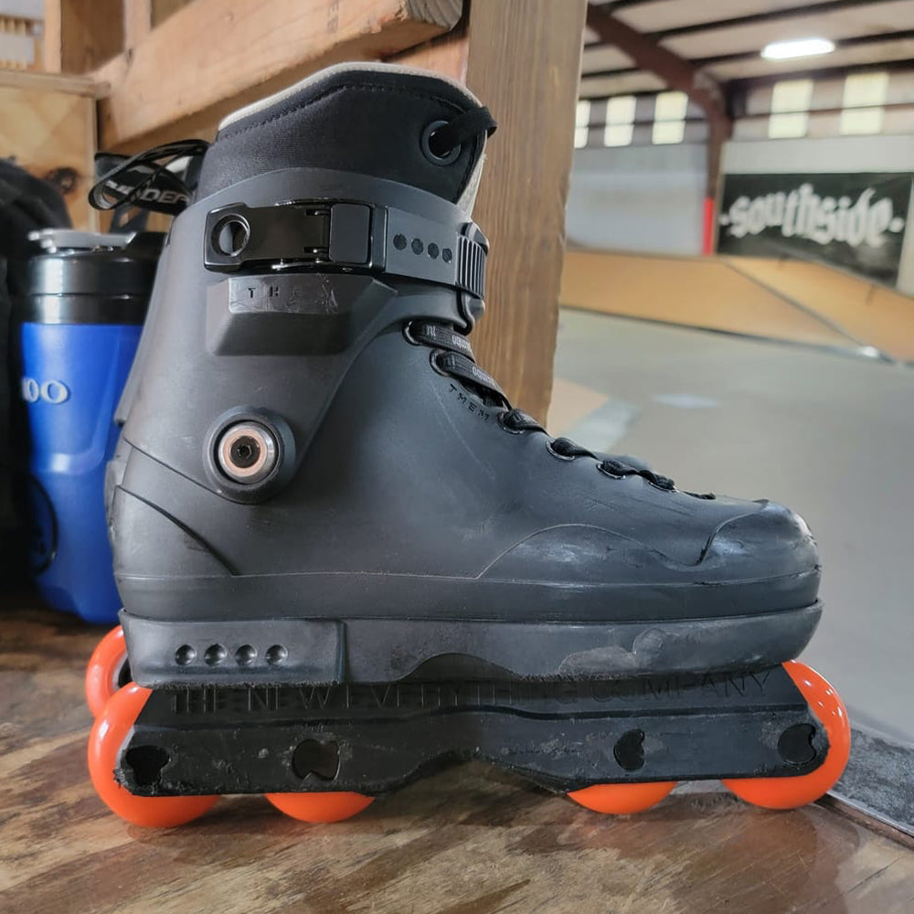 The TNEC frame was designed to be PLAYFUL. The 60mm max flat setup will keep things nimble on the ground, while the V shaped groove makes for worry free fun on rails and ledges, even the "TNEC" font bolts are adding to the vibe.