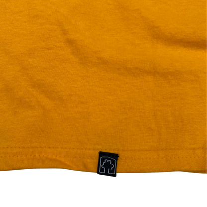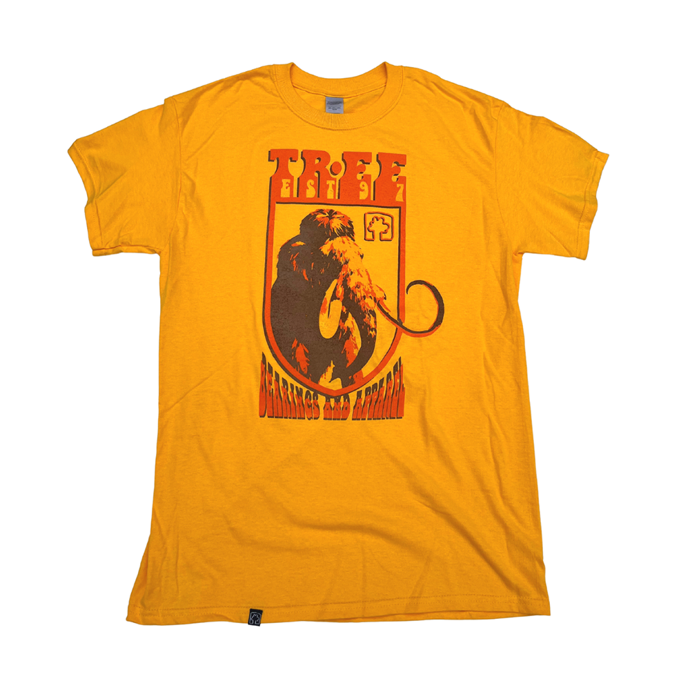 The "Mammoth" is a yellow shirt with a 3 color print and a woven label.all applied by hand and in a limited quantity. when its gone its gone. -