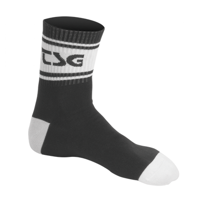 The TSG socks are cut to mid length with engineered details for authentic sports style. Made in a stretchy cotton blend with a bit of cushioning in the footbed and ribbed cuffs to keep them standing tall.
