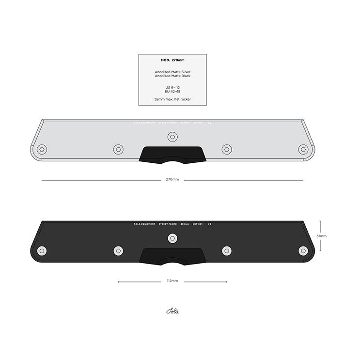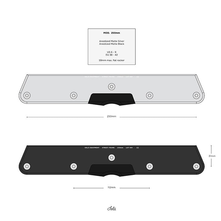 The Solá Equipment Street Frames were born from a dialogue between Kyle Solá and Dominik Wagner regarding the optimal flat-rocker frame, and the reintroduction of a lightweight metal construction into street skating.