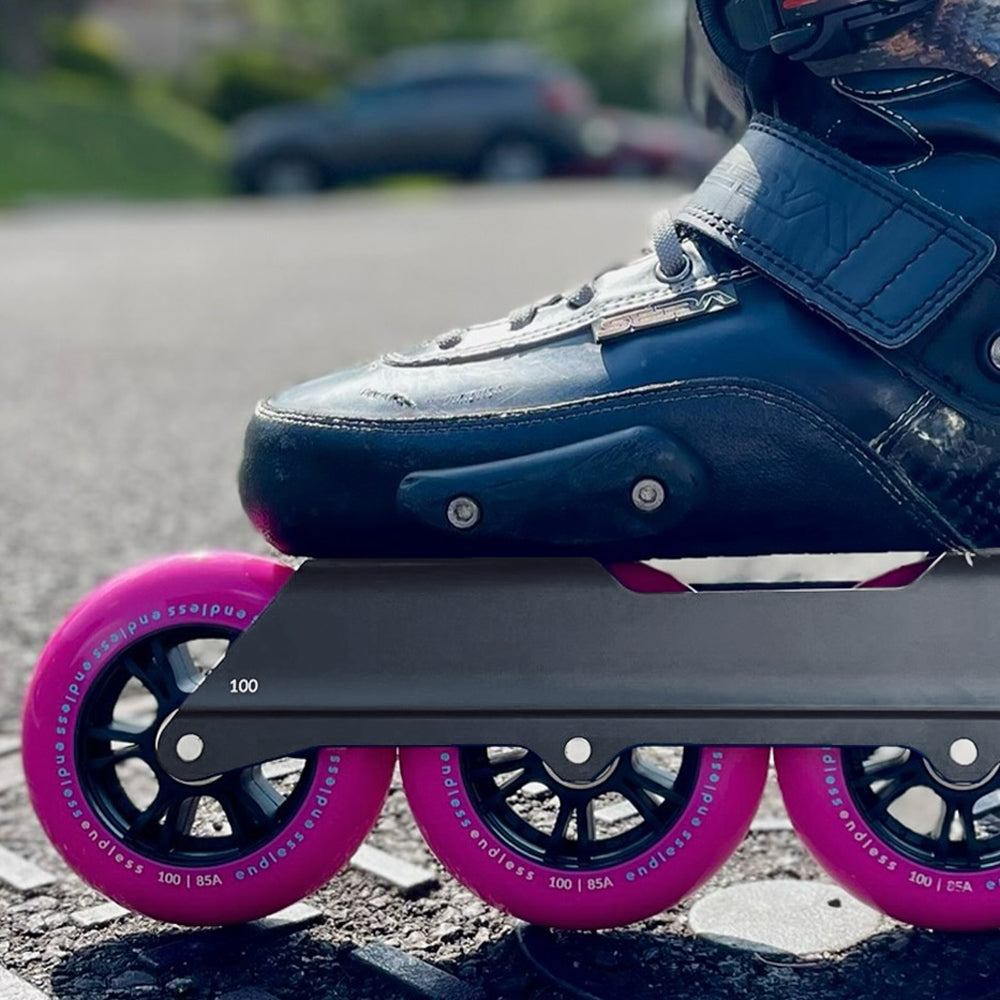 The Endless 100 Ultra UFS is the ultimate 4x100 mm frame for big wheel flow skaters who demand the best. It embodies the pinnacle of Endless Blading’s engineering expertise, delivering unmatched speed, responsiveness, and control which redefine the 100 mm big wheel wizard skating experience.
