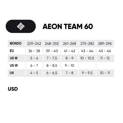 The Aeon Team 60 White comes with a comfortable USD liner that adjusts to your foot thanks to its